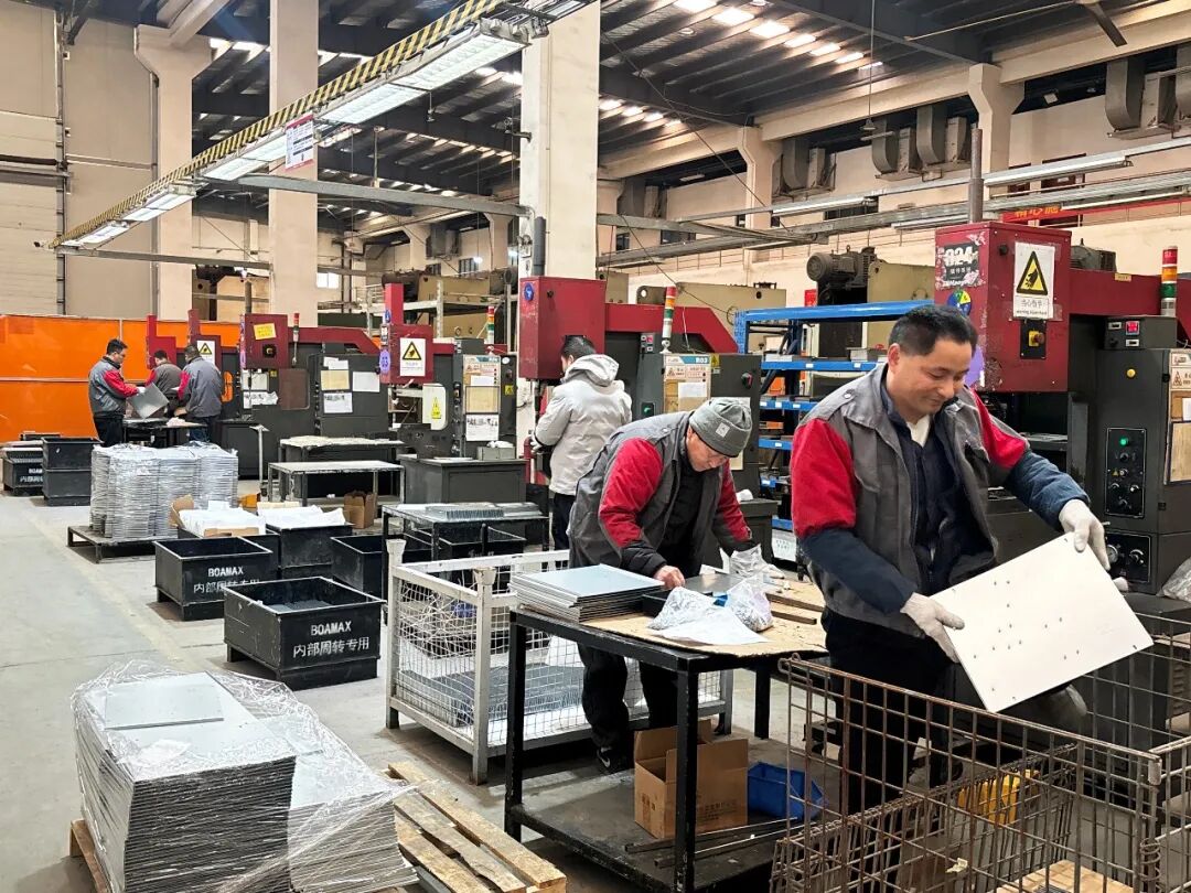 走进宝馨科技生产车间,机械臂精准舞动、智能生产线高速运转,与员工们专注忙碌的身影交织成动人的奋进图景。精密钣金成型等工序,中控屏上实时跳动的生产数据,彰显着假期生产的高效节奏。各车间开足马力赶进度,每一道工序都衔接有序,每一位员工都精神饱满,用实干为一季度生产“开门红”筑牢基础。